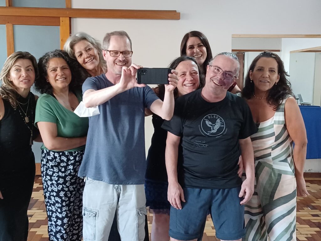 Explorar as intersecções entre as diversas manifestações humanas é um desafio enriquecedor com resultados surpreendentes. Uma carta para si na infância ou adolescência – esta foi a proposta do primeiro encontro da oficina “Escrita em Movimento”. Intercalando atividades de produção textual, leitura e biodanza, diversos gatilhos de memória transformaram a interação da turma em experiências inestimáveis, eternizadas em palavras. Muita gratidão ao convite da querida Myrthes Gonzalez, amiga desde o distante ano de 1976, uma das maiores autoridades mundiais em Biodanza com quarenta anos de experiência. Estar à altura do convite significou muito para mim.